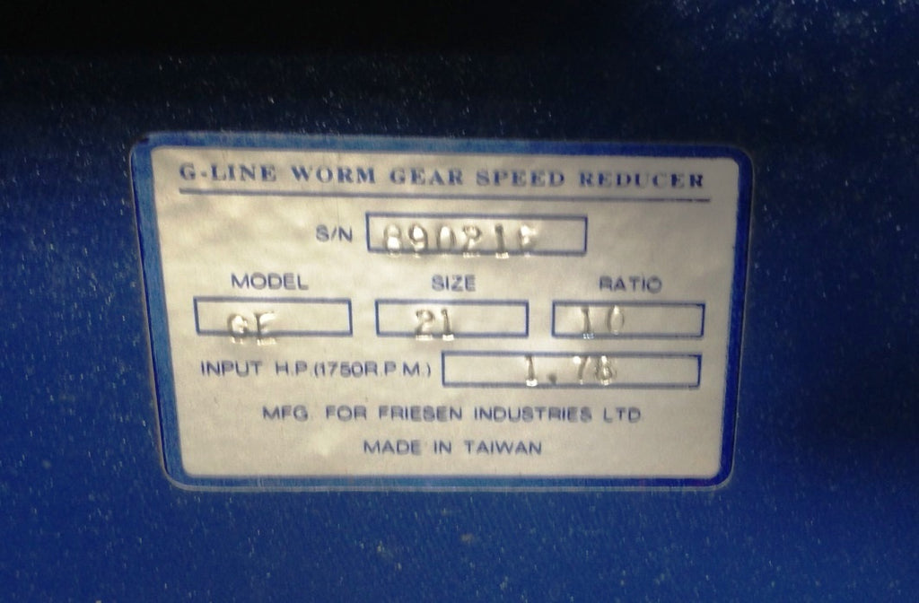 G-Line Size 21 10:1 Worm Gear Speed Reducer