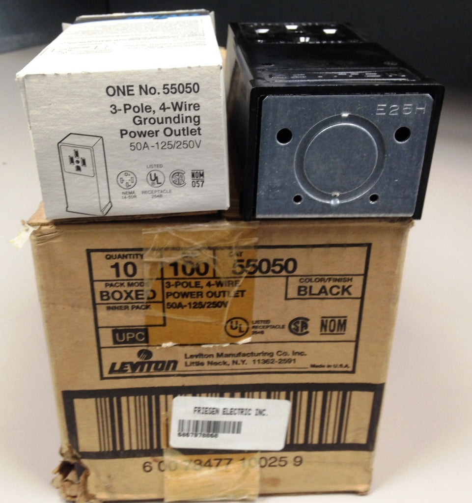125/250 volt, Black, Straight blade, NEMA 14-50R, 3 pole, 4 wire,