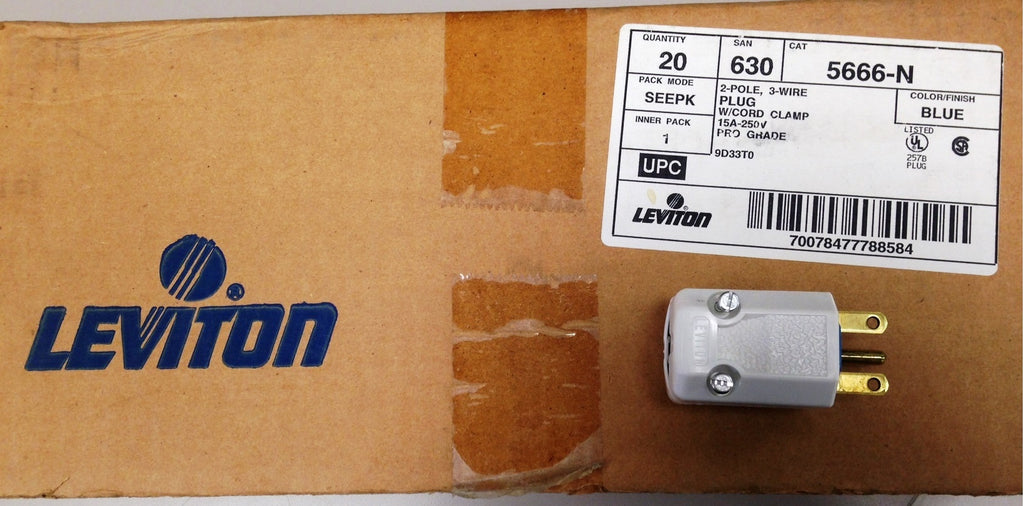 Leviton 5666-N 250V 15A Male Plug, NEMA 6-15 (Box of 20)